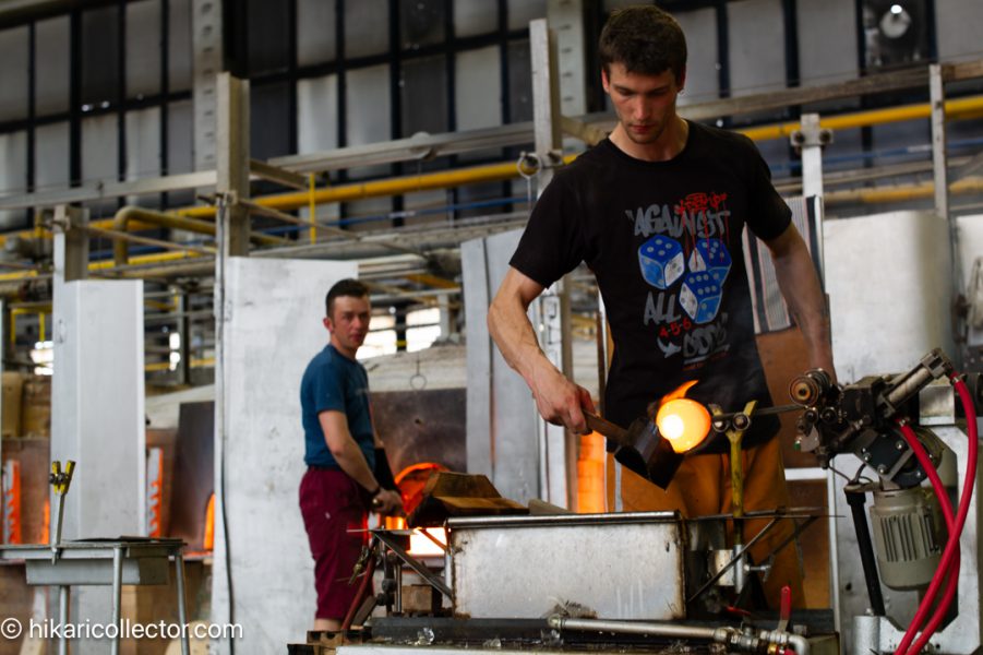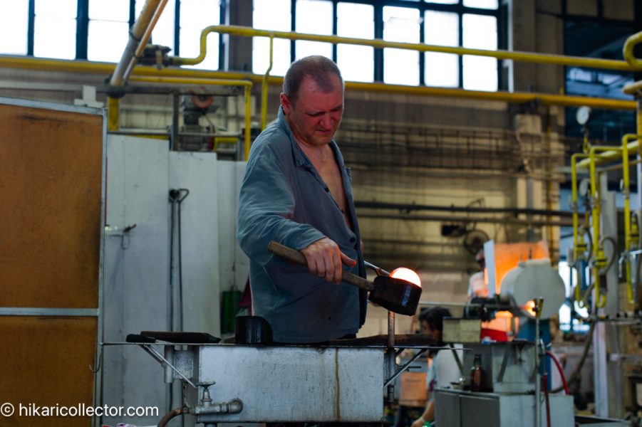 少し古い写真ですが(確か3度目のチェコ旅の時?)、ドイツ国境近いカルロヴィ・ヴァリに拠点を置くボヘミア・ガラスの名門、Moser社のガラス工場を見学した時の写真です。